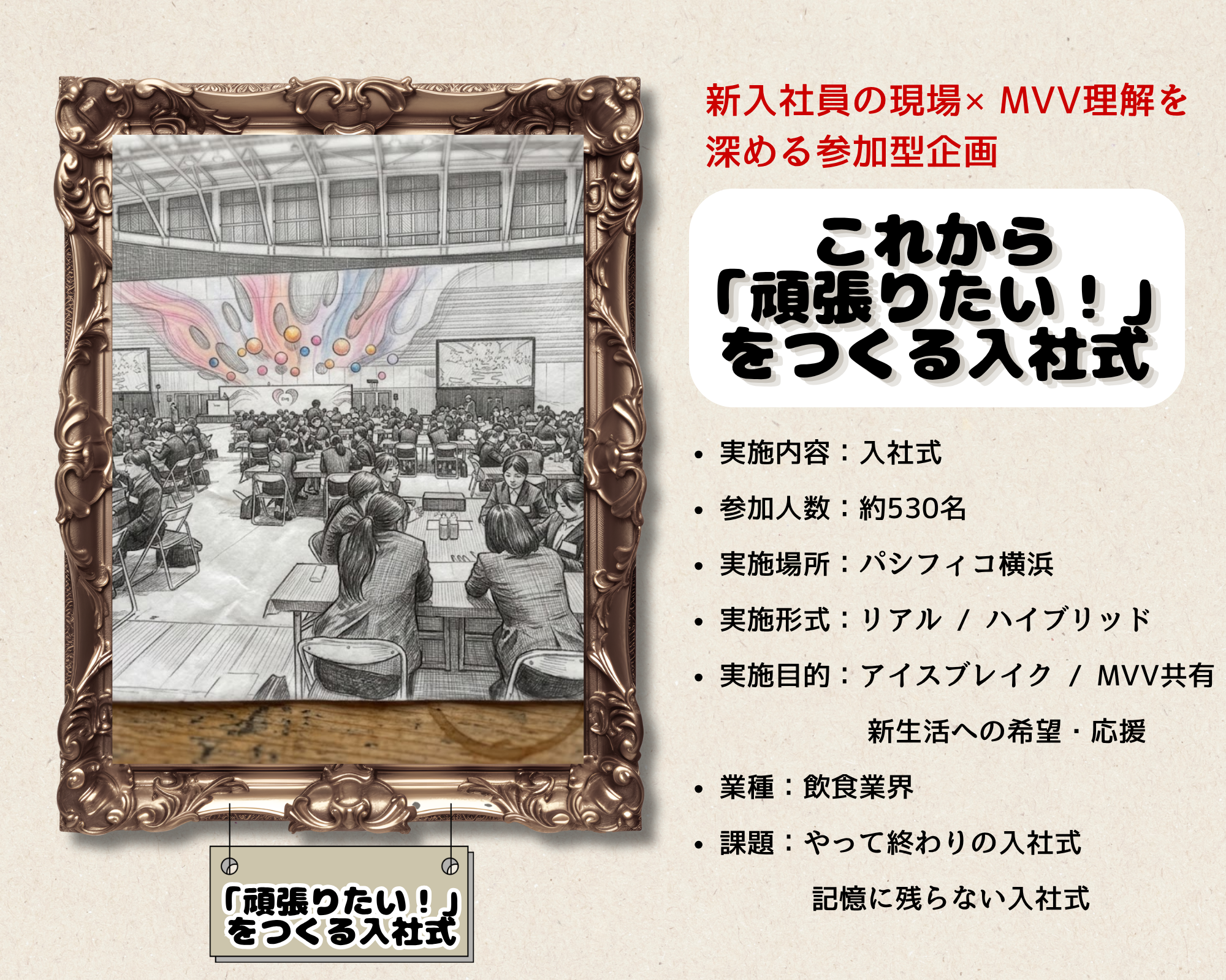 社員やステークホルダーに対して企業のビジョンやメッセージを伝える絶好の機会となります。驚きや楽しい仕掛けで感動を生み出します。